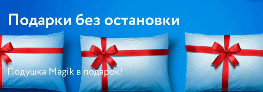 При покупке любого матраса Мистер Слип получите подушку «Молли» в подарок, а за двуспальный – сразу две.
